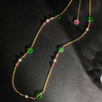 Natural Jade+Pink Tourmaline+Fresh-water Pearl Necklace, 18K